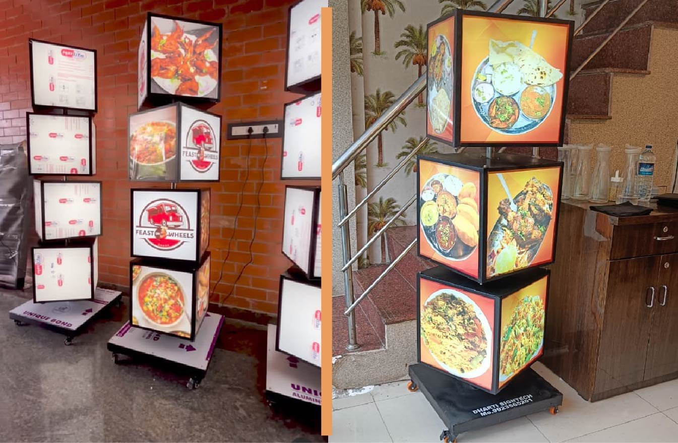 • Single-Side & Double-Side Display Options • Ad-Changing Facility included Perfect for restaurants, cafés, retail stores, and promotional displays.